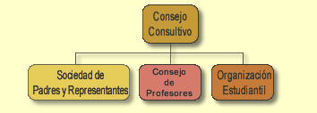 El Consejo Consultivo es el órgano asesor y de Coordinación de la Comunidad Educativa. Está integrado por ( ) representantes de la Sociedad de Padres y Representantes, ( ) docentes que componen el Consejo de Profesores y ( ) estudiantes en representación del alumnado. Su estructura funcional viene dada por el siguiente esquema: